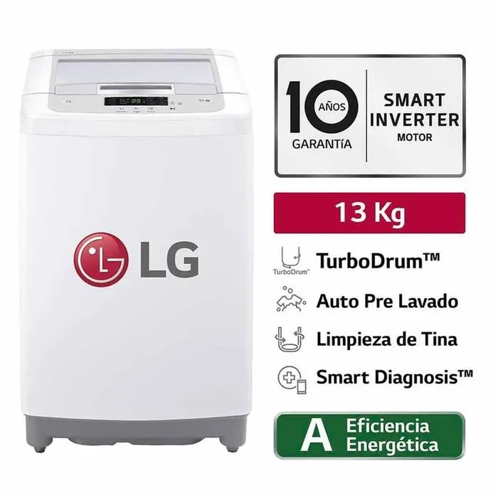 La Lavadora LG WT13DPBK de 13 kg combina tecnología Smart Motion y un diseño moderno en color gris y blanco para ofrecer lavados eficientes y personalizados. Su motor Smart Inverter asegura bajo consumo de energía y un funcionamiento silencioso, ideal para el cuidado de todo tipo de prendas.