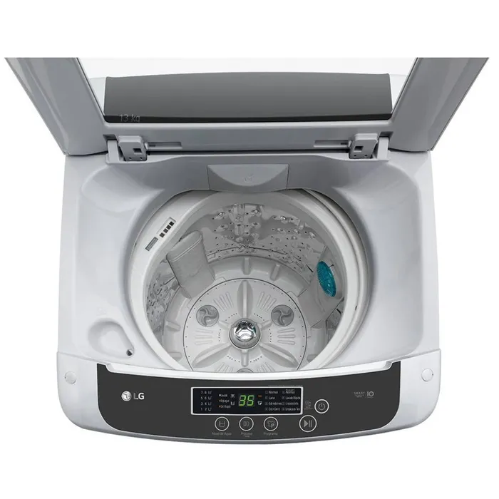 La Lavadora LG WT13DPBK de 13 kg combina tecnología Smart Motion y un diseño moderno en color gris y blanco para ofrecer lavados eficientes y personalizados.