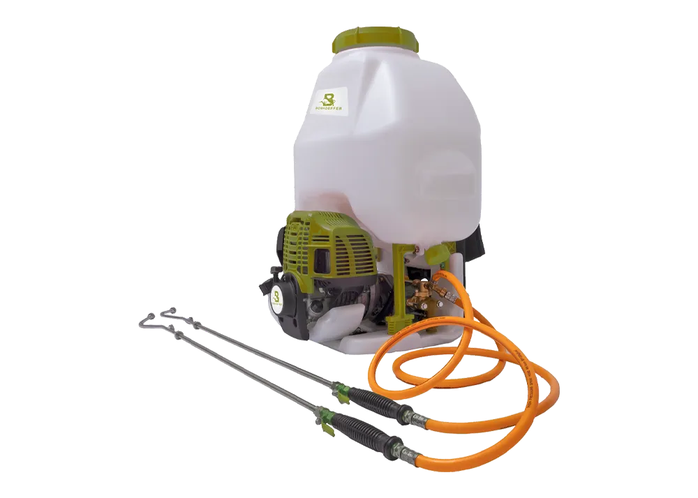 La fumigadora a gasolina Bonhoeffer BON-P-KS26 combina un motor de 2 tiempos de 1.2HP con una bomba de émbolo de alta presión de latón, ideal para aplicaciones exigentes que requieren pulverización precisa y presión sostenida. Es una excelente opción para cultivos de mediana y gran extensión, viñedos, huertos y fumigación profesional.