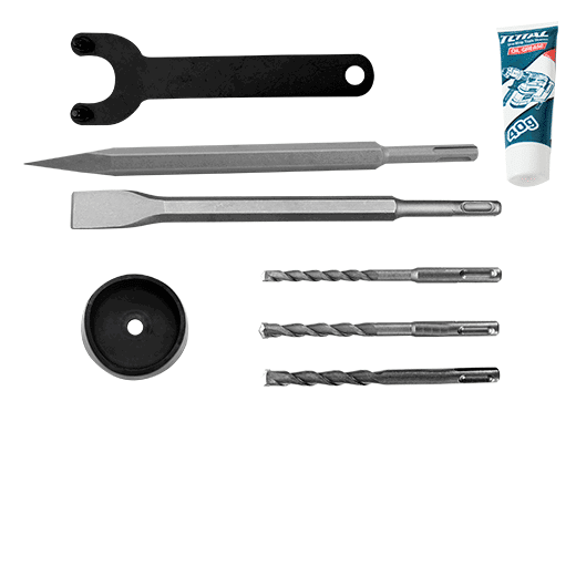 El Rotomartillo Total es la herramienta ideal para profesionales que buscan potencia y versatilidad en sus proyectos industriales. Con una potencia de 1500 W y una energía de impacto de 5.5 J, este rotomartillo es capaz de perforar hormigón hasta 32 mm, metal hasta 13 mm y madera hasta 40 mm, adaptándose a diversas necesidades de trabajo.